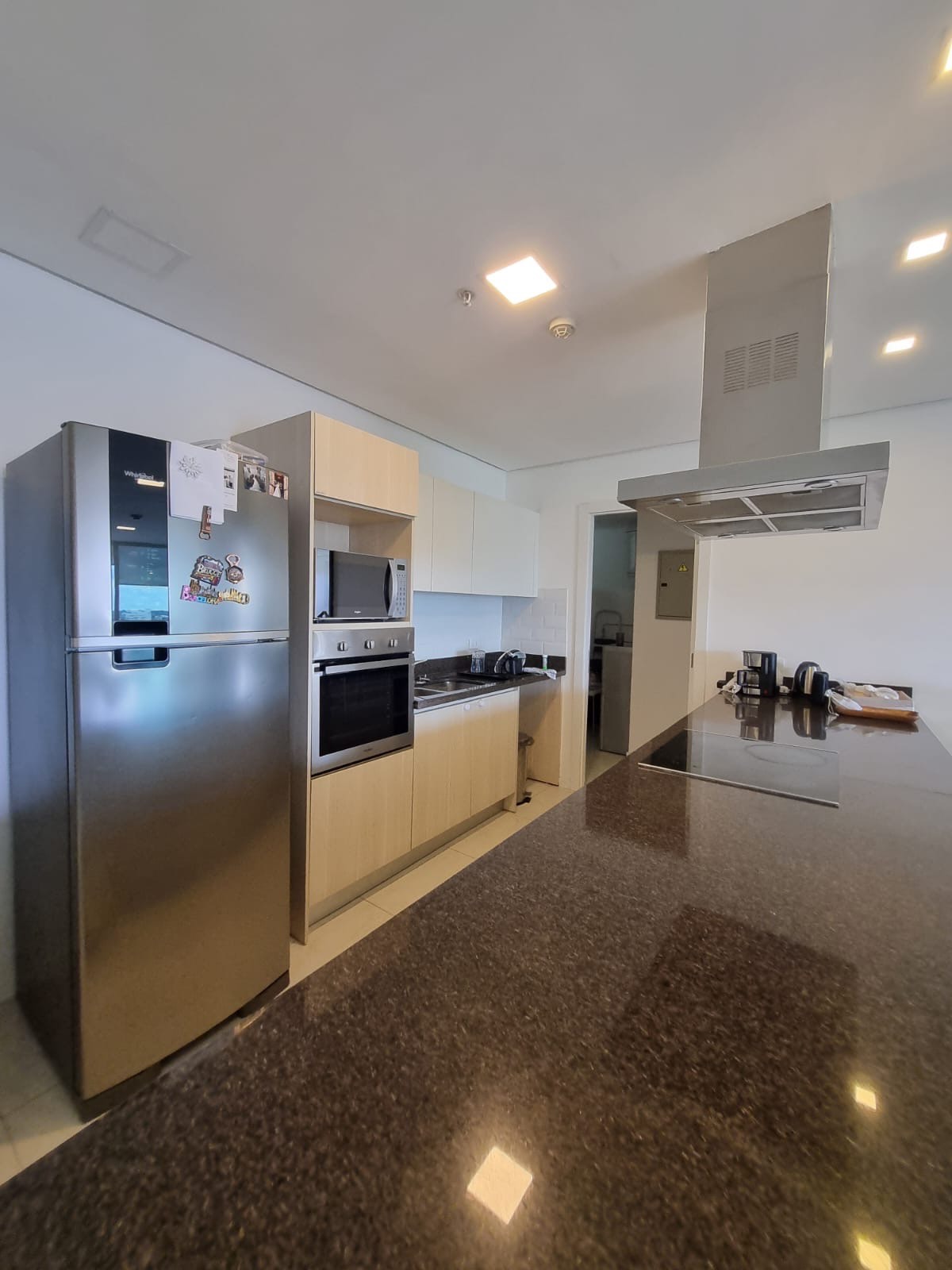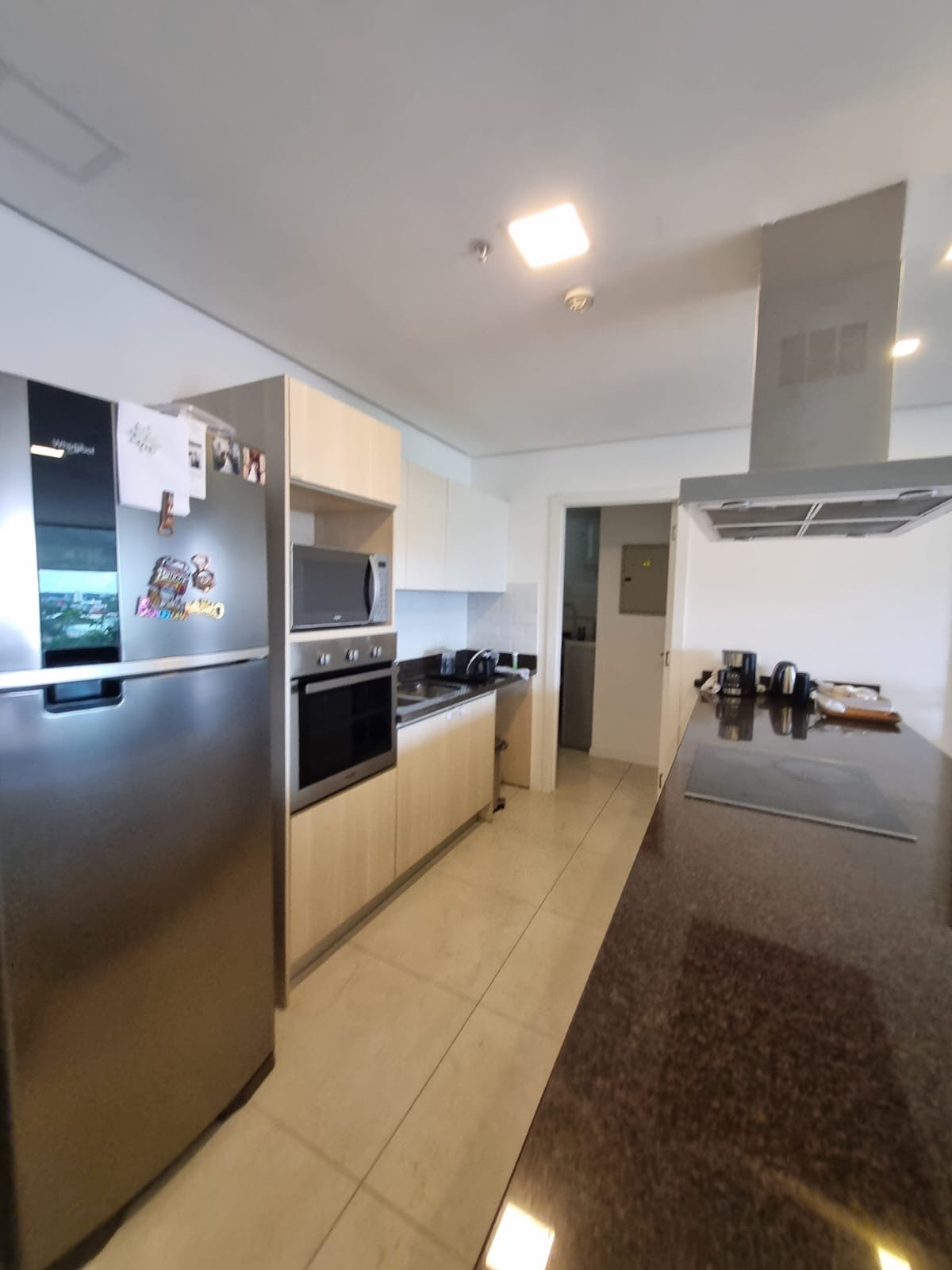 Cocina integrada amoblada y equipada con anafe, extractor y horno eléctrico