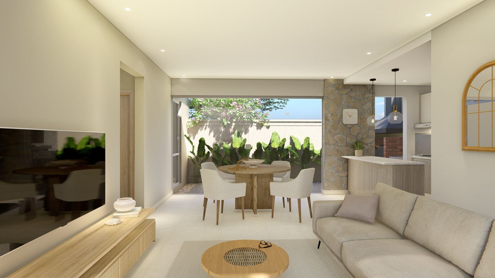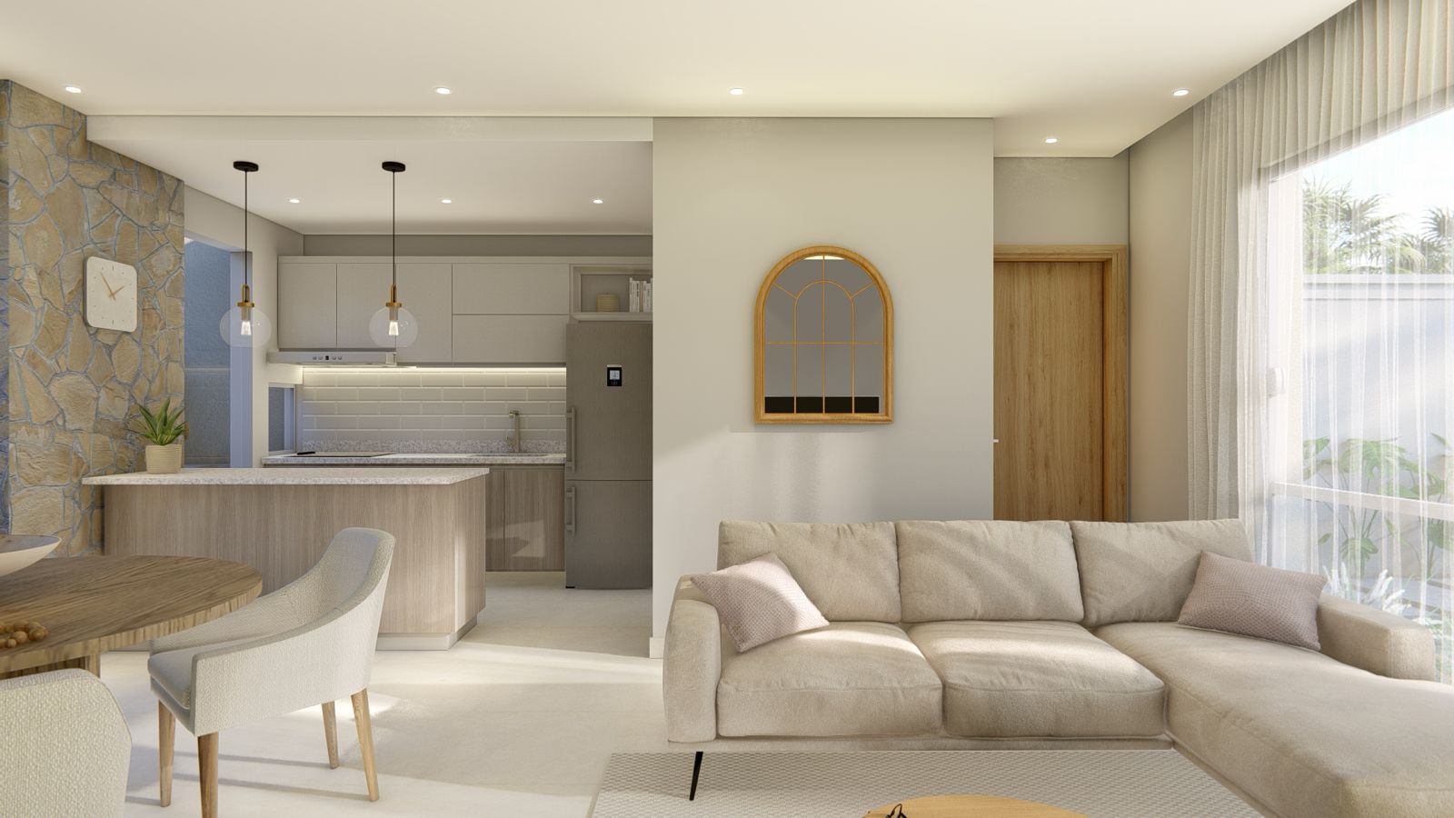 • Living comedor con cocina integrada
